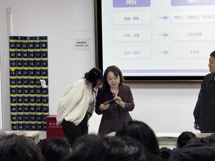 针对行业核心运营模式,陈经理重点聚焦跨越速运主营的BtoB销售模式,通过实际案例拆解模式优势与运营逻辑,详解BtoB模式下物流服务的精准化、高效化特性,让学生直观了解行业主流运营体系,明晰专业知识在企业实践中的应用场景。同时,她结合当前物流行业数字化转型趋势,分析行业人才需求新导向,从专业能力提升、职业素养培养等方面,为学生提供针对性建议,助力学子精准匹配行业发展需求。