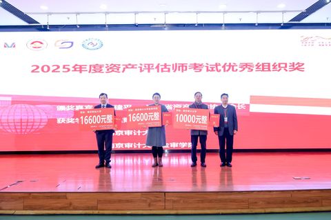 在12月21日的开幕式环节,南京财经大学党委常委、副校长姚文韵致欢迎辞,中国资产评估协会副会长、江苏省资产评估协会会长李建平,江苏省教育厅高等教育处处长徐庆,以及全国资产评估专业学位研究生教育指导委员会秘书长、中央财经大学财政税务学院副院长李小荣教授分别发表致辞。随后举行的“2025年度高校在校生参加资产评估师考试表彰仪式”上,南京审计大学金审学院凭借在考试组织、教学支持与学生培养方面的突出表现,获得组织工作肯定,荣获“2025年度资产评估师考试优秀组织奖”;资产评估专业教师徐明瑜因指导学生成效显著,获评“优秀指导教师奖”。这一荣誉不仅是对学校长期以来坚持“应用型、复合型”人才培养定位的肯定,也体现了江苏省资产评估协会对学校资产评估专业教育教学质量与学生职业能力发展的高度认可。